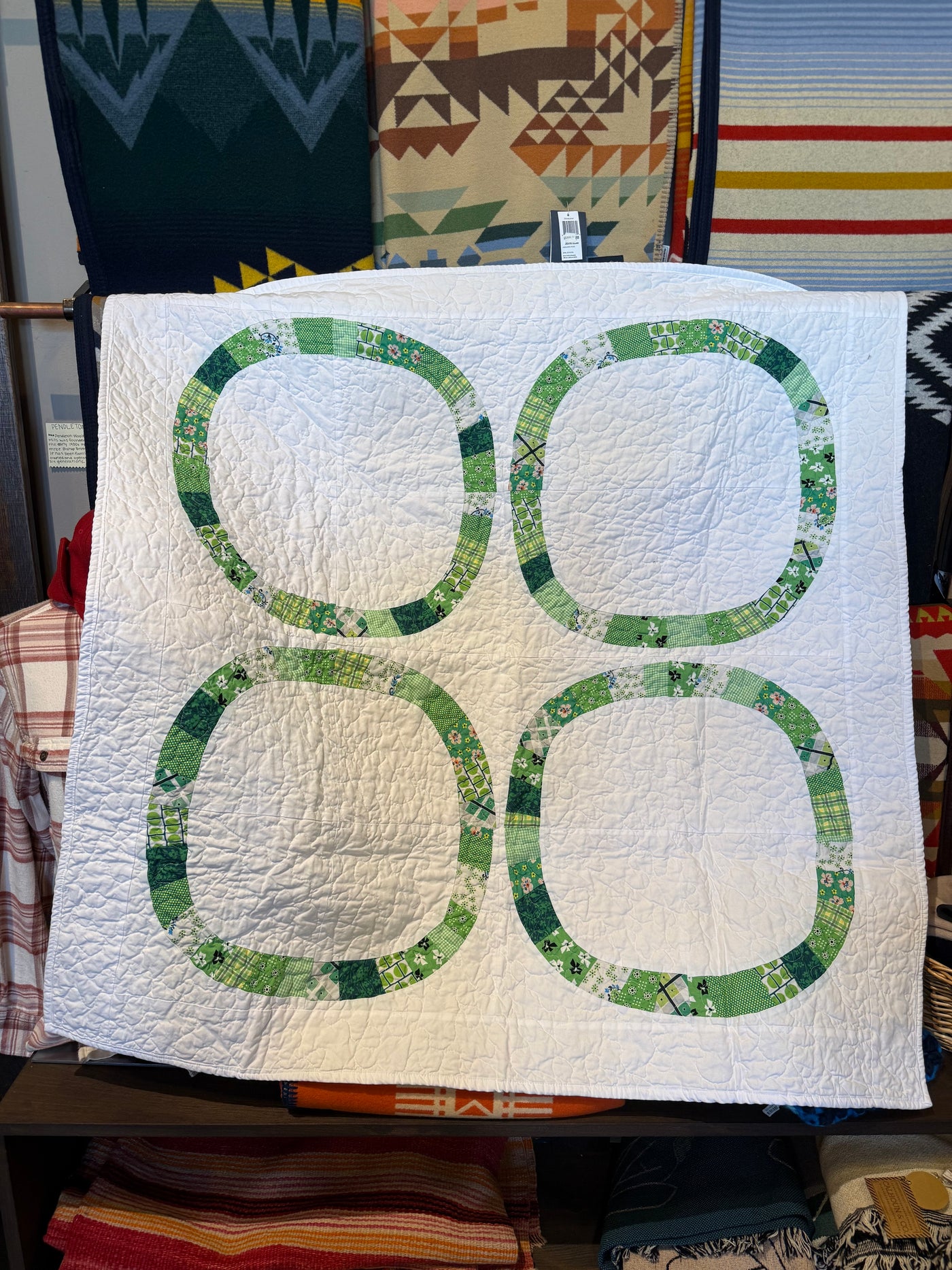 Atkins Handmade Quilt - Green Rings 45"x45" Sale