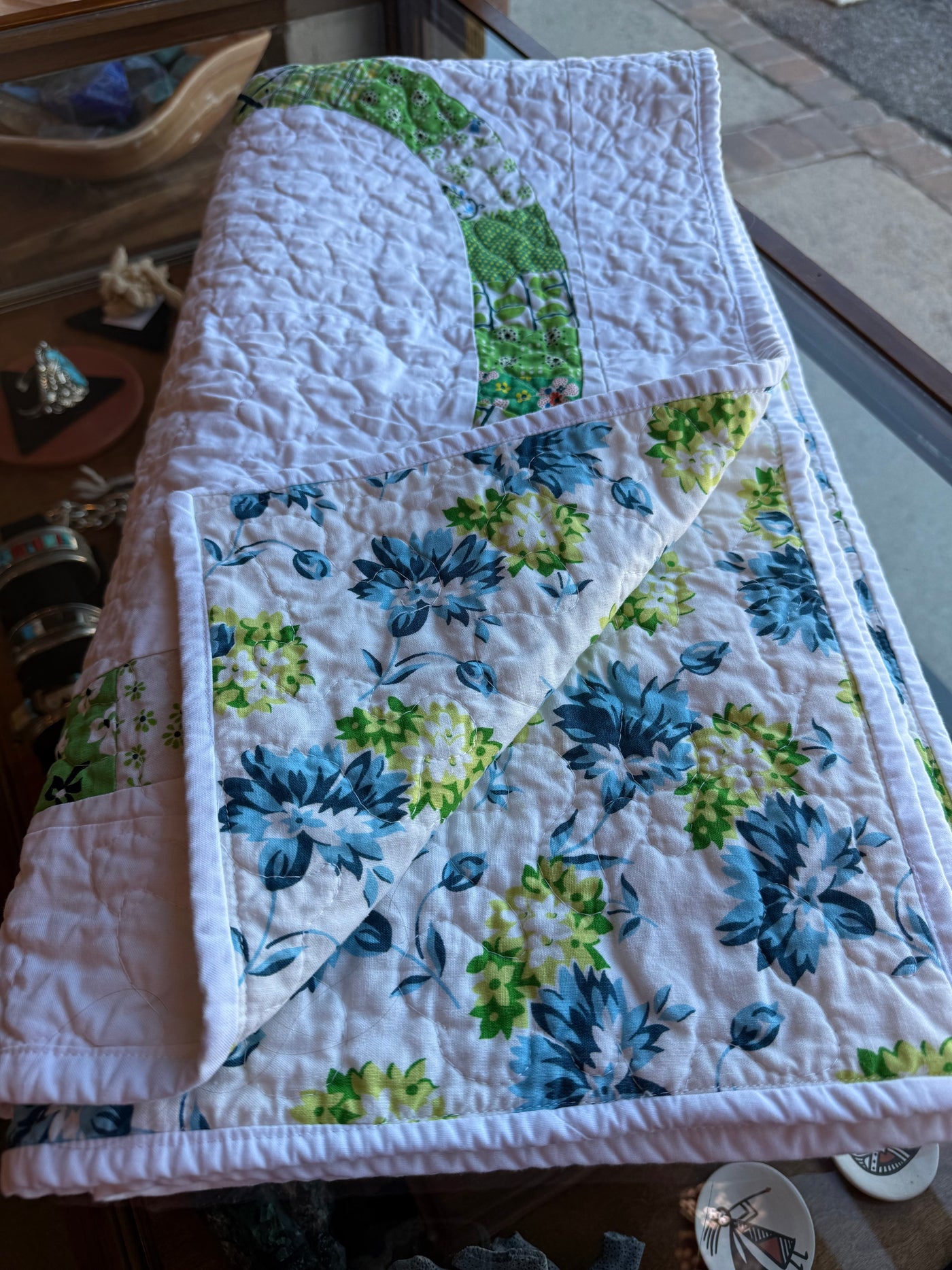 Atkins Handmade Quilt - Green Rings 45"x45"