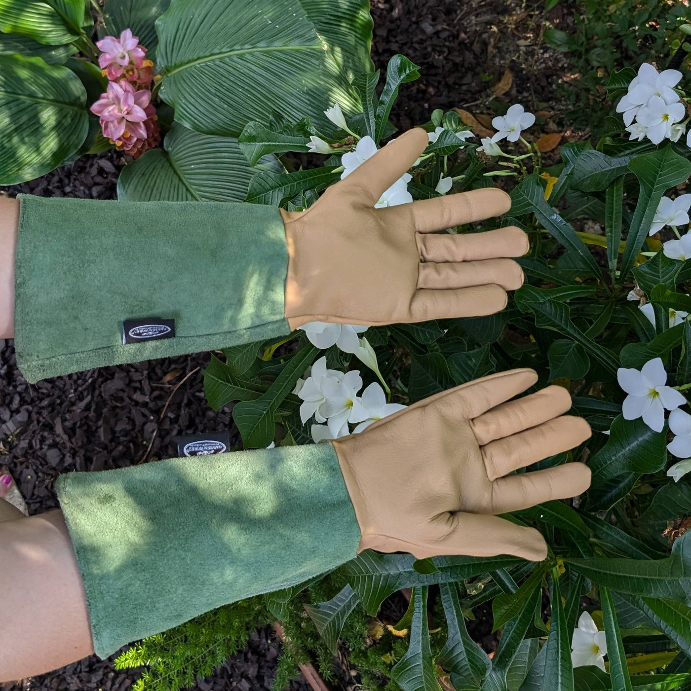 Deluxe Rose Pro's Gloves: Tan Palm/green Cuff / Small Sale