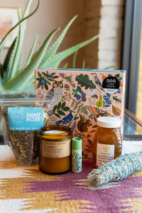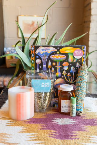Our best selling Good Vibes Bundle features an assortment of goodies to provide your loved one with all the essentials for a perfect self-care day. Each includes a hand selected puzzle as well as a variety of personal care products and snacks like a lip balm, lotion, coffee, tea, soap, and incense or sage etc.