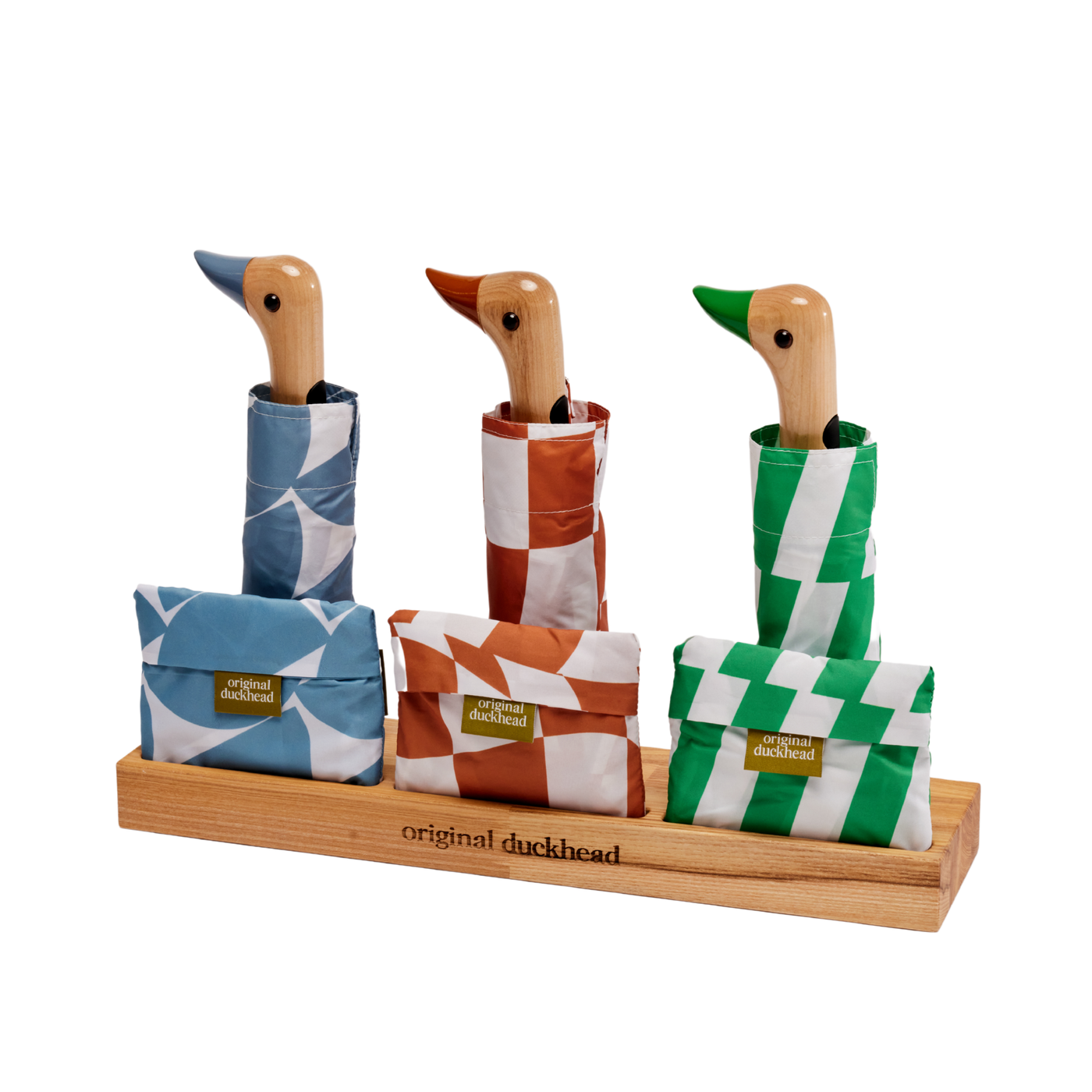 Introducing the brand-new multipacks in your favourite Original Duckhead patterns – the perfect variety selection to showcase in your store this season. Each set includes a curated mix of Kelly Bars, Denim Moon, and Peanut Butter Checkers umbrellas, giving retailers a proven assortment of designs that attract attention and drive strong sell-through.