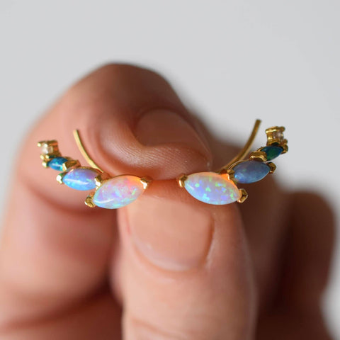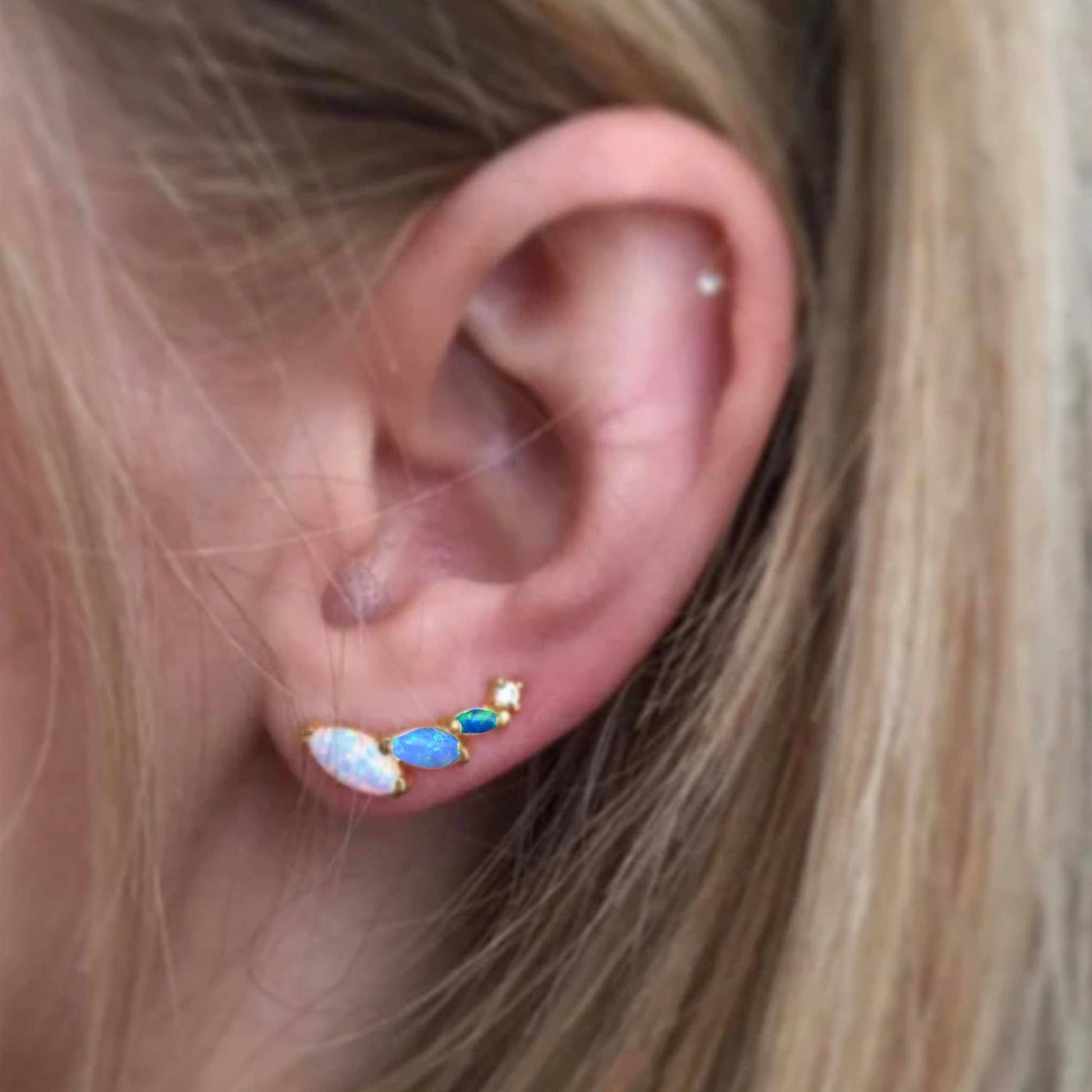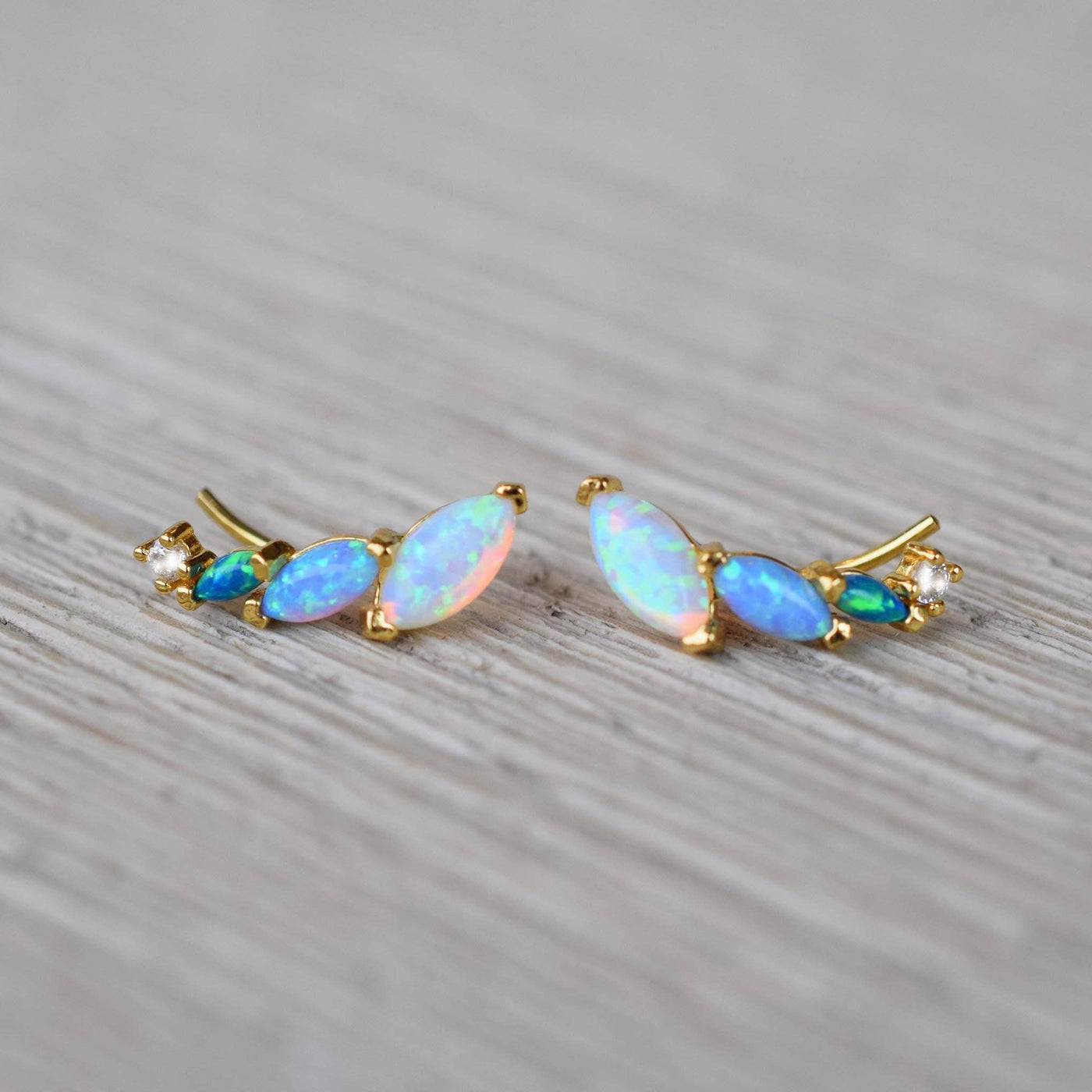 -18kt gold vermeil -lab created blue opal ombre stones