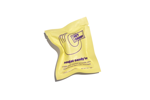 nougat with roasted almonds, salted caramel and dark milk chocolate