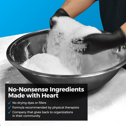 USP Epsom (magnesium sulphate) hand-blended with 10 pure essential oils and Arnica to help with on set muscle soreness and lactic acid buildup. Recommended by Professional Sports trainers, Physicians and Professional athletes as well as people like us (hard working regular folks)