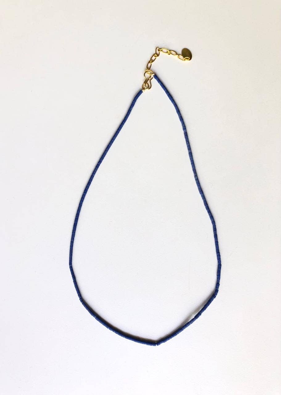 What more do we need to say about a thin beaded necklace that's natural lapis, our favourite stone.